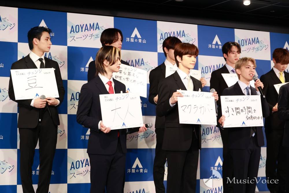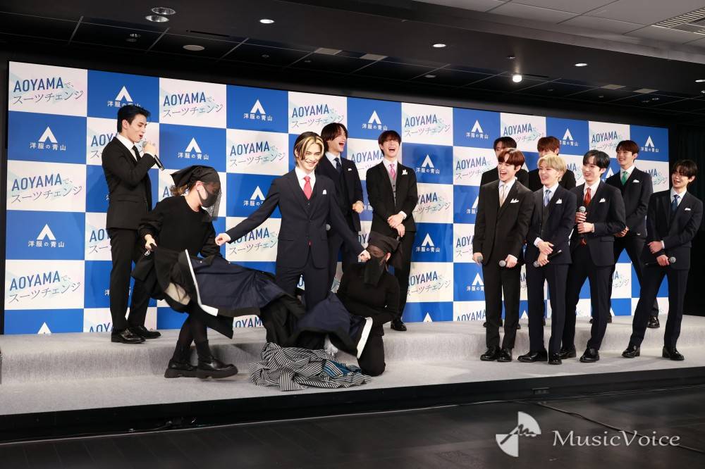 11人組グローバルボーイズグループINIが18日、『洋服の青山 2023年フレッシャーズ新CM発表会』に登壇した。成人を迎えた松田迅は袴で登場し、スーツへの早着替えを披露した。