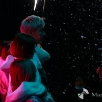 最後はバルコニーでスノーマシーンを使用し、雪の中をイメージした撮影。t-Aceの首に巻かれているマフラーを女性たちが引っ張り、首を絞められるシーンでフィニッシュし、撮影を終えた。