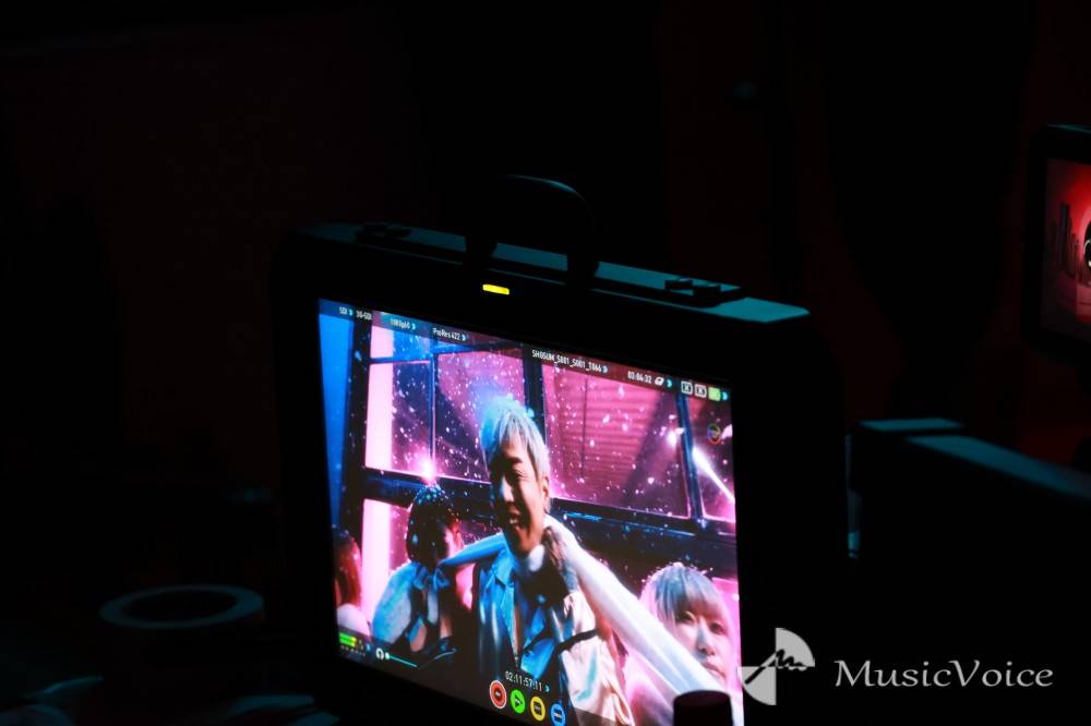 撮影した映像を真剣な面持ちで確認するt-Ace