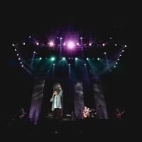 そして、満を持してのflumpoolのライブは、満場の手拍子に支えられた「Touch」からスタート。しなやかなボーカルを大阪城ホールいっぱいに響かせた山村が、「3年間、心の中で叫んでいた声を聞かせてくれ!」と続けたのは「星に願いを」。今日を迎えた喜びを長い拍手で伝える観客の姿に、「本当に来てくれてありがとう! 会いたかった。もう涙をこらえるので精いっぱいです」とは山村。続けて、「ホンマに最高の兄貴です。今日のライブも僕たちを刺激し、飛躍させてくれると思います。だからflumpoolも全力で、これまでで一番いいライブをしようと思ってます!」と宣言し、メロウなミドルバラード「証」では、巨大な空間を鮮やかに彩る照明もろとも世界観を構築。「今日来てくれた皆さん一人一人がいなかったら、僕たちの夢はかないませんでした」と感謝を述べた後も、「どんな未来にも愛はある」~「その次に」と、flumpoolが15年かけて積み上げた切なき楽曲群に心地良く引きずり込んでいく。