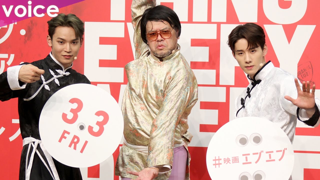 野性爆弾のくっきー!、JO1の與那城奨と佐藤景瑚が28日、都内で行われた映画『エブリシング・エブリウェア・オール・アット・ワンス』(3月3日公開)大ヒット祈願イベントに登壇。劇中で繰り広げられるヌンチャクアクションにも挑戦。10分ぐらいレクチャー受けただけでこなした3人に指南役からは「素晴らしいです」と絶賛を受けた。