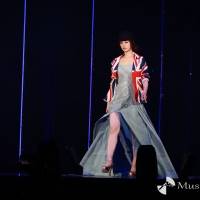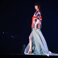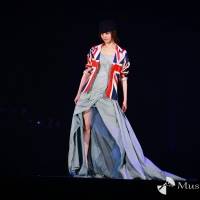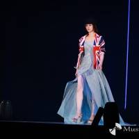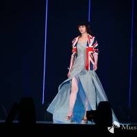 幕開けを飾るオープニングショー『TGC SPECIAL COLLECTION』のトリを飾った。日本を代表するスタイリスト・野口強氏によるスタイリングのもと、英国国旗柄がデザインされたジャケットに、深いスリットが入ったロングワンピースのドレスコーデ。美太ももも大胆に肌見せした。
