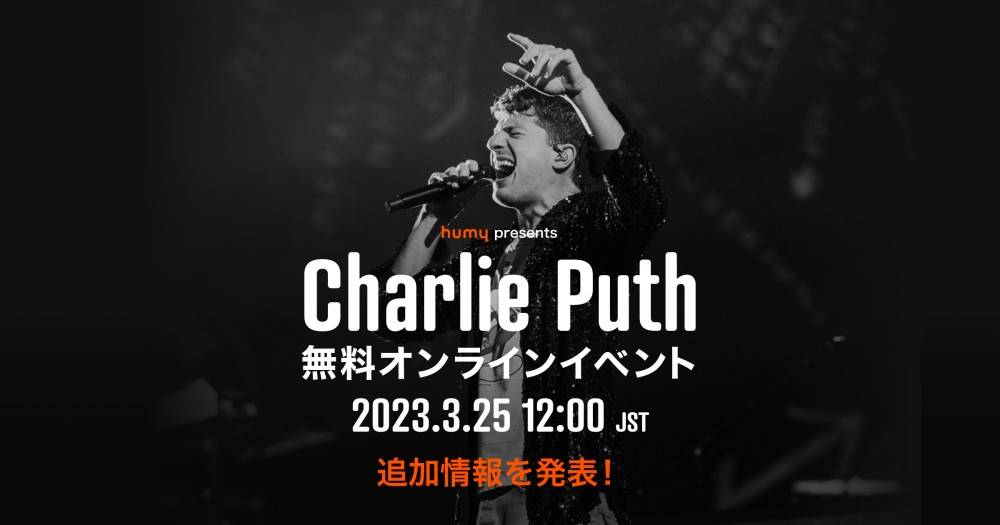 3月25日にチャーリー・プースの公式ファンコミュニケーションプラットフォーム「humy」で開催する無料オンラインイベン ト「humy presents: the Charlie Puth Livestream Experience (available in select territories)」の追加情報を発表した。