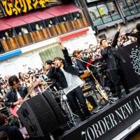7ORDERが乗った船が大阪ミナミのランドマークとも言えるグリコの看板を横目に道頓堀川に登場し、大歓声の中、川沿いの遊歩道から戎橋の上まで360°に目線を送りエネルギッシュにアピール。安井謙太郎(Vo.Gt)も「初めましての人も、いつも来てくれている人も、短い時間ですが楽しんでいただけたら。すごくない? 雨予報だったのに雨降ってないよ!」と持ちこたえた天気に喜びを隠さない。