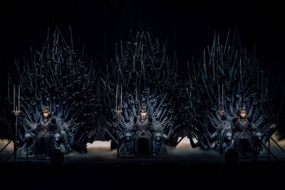 4月2日(日)の「CLEAR NIGHT」は、THE OTHER ONEのTHRONEの世界と同じ玉座が登場し、SU-METAL、MOAMETAL、そして、1月の幕張メッセ公演では空席となっていた玉座にMOMOMETALが鎮座し、新生BABYMETALのスタートに相応しい「METAL KINGDOM」で壮大に幕を開けた。