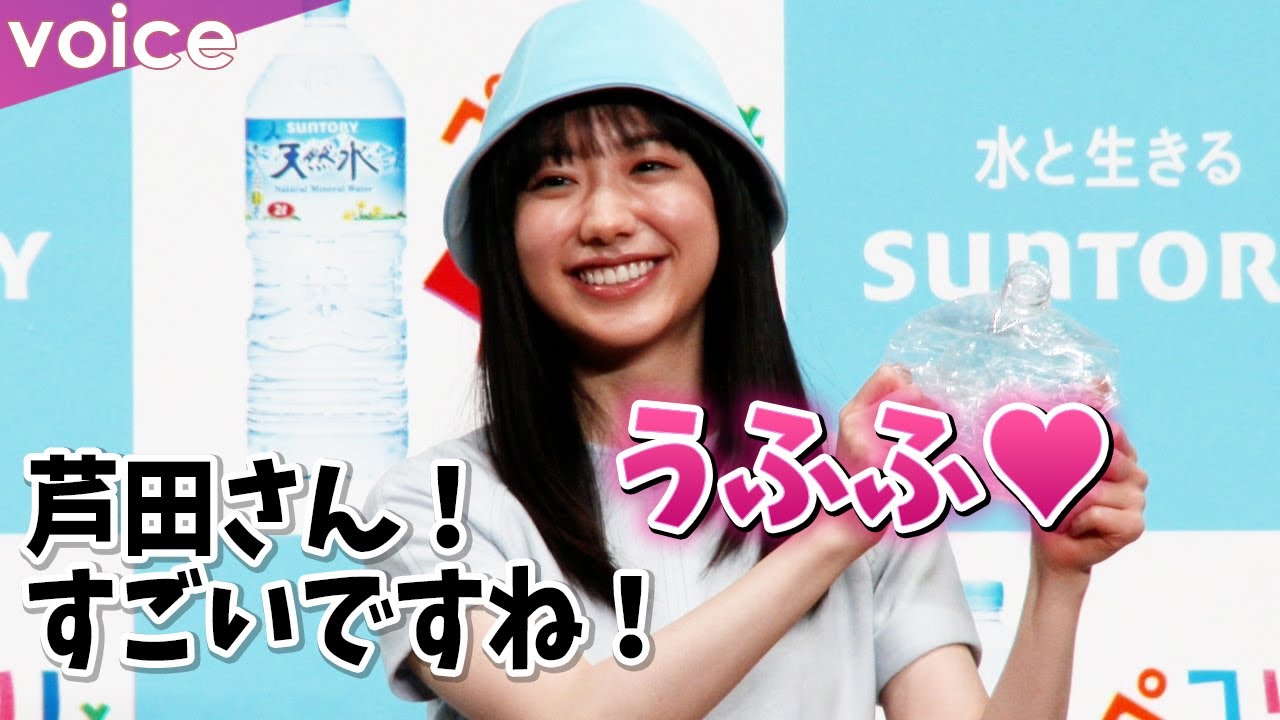 この日は新CMの撮影の裏側を振り返ると共に、「未来のためにできるかな?」にちなんだフリップトークなどを展開。更にCMでも披露したペットボトルたたみ実技を認定する「天然水2L ペコリ!とたたみマイスター」の検定を受けた。スムーズにこなした芦田に司会者も「すごいですね!」と称賛。これに「うふふ」と笑顔の芦田。会場からも拍手が起こり見事マイスターの称号を手に。「第一号の響きはいいですね!」と満面の笑顔を見せた。