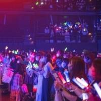 メインアクトの1組目として登場したBUDDiiSは、スターダストプロモーションの若手アーティスト集団・EBiDANに所属する10人組のダンス&ボーカルグループ。両手を波打たせるダンスでバディ(BUDDiiSファンの呼称)と盛り上がる「Under The Sea」、野生的な魅力を全開にファンを挑発する「BEAST2」と、冒頭からキラーチューンを続けて気合いをみなぎらせる彼らのパフォーマンスに、客席のペンライトの光の海も青や赤に景色を変えてぐんぐんと一体感が高まってゆく。ボーカル陣のスキルが光るスムースなミドルチューン「ON & ON」を終えて自己紹介をすると、リーダーのFUMINORIは「今日がBUDDiiS初めての人も、どっぷりとこの時間を楽しんでいただけたら」とリクエストした。メンバー自身で作詞作曲やダンスの振付などを手がける“DIYグループ”という肩書きを持つ彼ららしく、後半パートではKEVINが作詞作曲を、FUMINORIとFUMIYAが振付を手がけた「OZ」「The One」の2曲を披露してしっかりと個性をアピール。まっすぐに愛しい人への思いを伝えるキュートなラブソング「The One」の日替わりのセリフパートでは、HARUKIの「だれにも奪われたくないくらいに君が大好き!」という言葉に悲鳴のような歓声が沸き上がっていた。