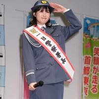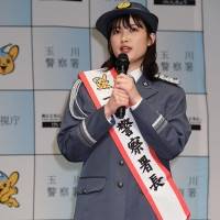 井頭愛海(22)が2日、警視庁玉川警察署の一日警察署長を務めた。