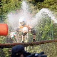 狩野英孝とザコシショウが「たけし城」の難関・竜神池に挑戦「地獄ですわっ!」