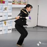 山本千尋が7日、警視庁志村警察署で自身初の一日警察署長を務め、集まった子供達を前に交通安全ルールの大切さを呼び掛けると共に、世界大会優勝の腕を持つ中国武術の剣技を披露した。