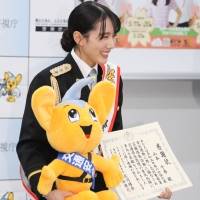 貴乃花の次女・白河れい、一日警察署長 小さい頃の夢は警察官 制服姿で敬礼