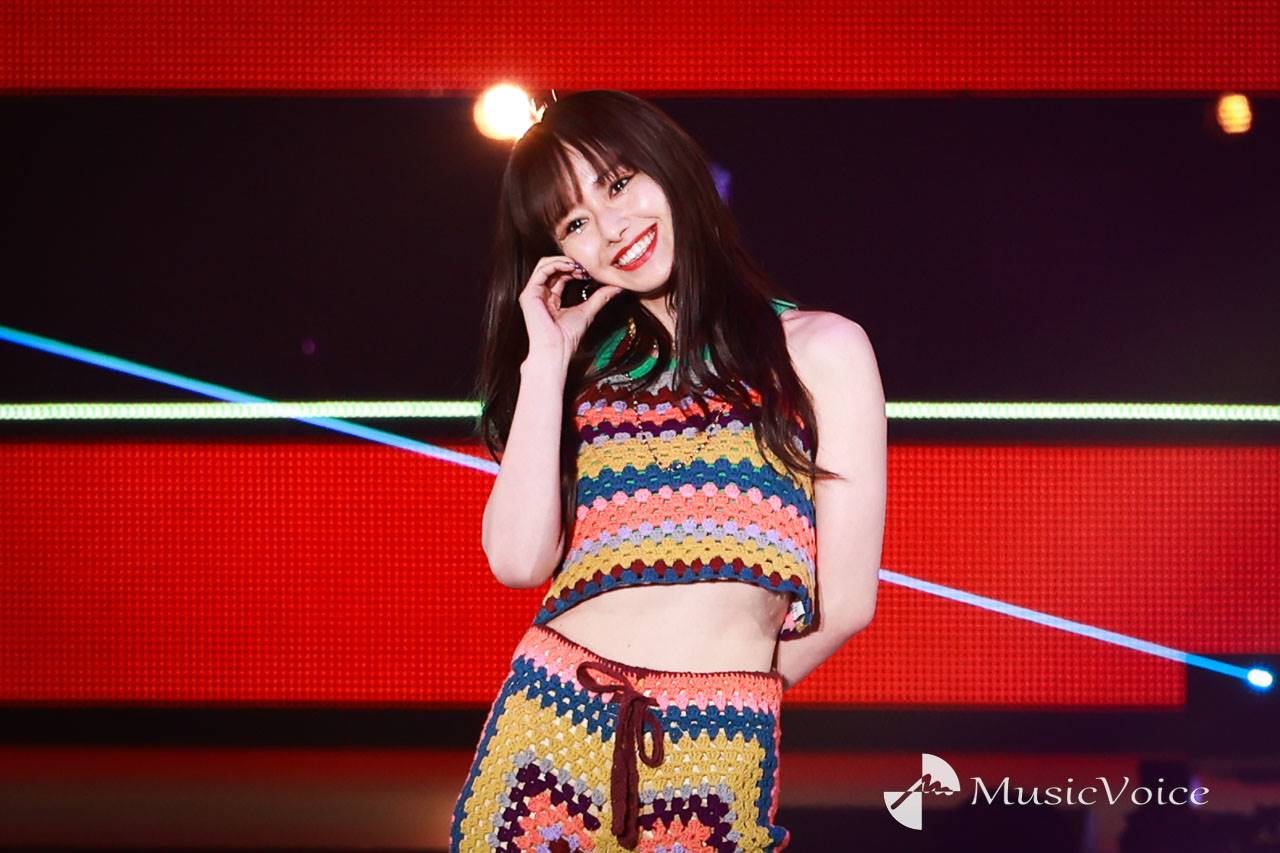 映える夏コーデを着こなす山本はランウェイトップでハートマークを作りにっこり笑顔を見せて魅了した。