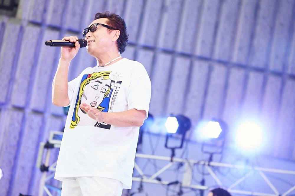 ステージに登場した杉山は開口一番、客席に向かって「みんなも一緒に歌ってね」と声出し解禁ライブであることを伝え、最初に野音で響かせたのは「Kona Wind」。杉山のアコギと共に、バンドメンバーと合唱するサビ始まりのRemasterバージョンだ。続いて「水の中のAnswer」「あの空も。この海も。」と80年代に誕生させた楽曲でオープニングから観客を惹きつけた。