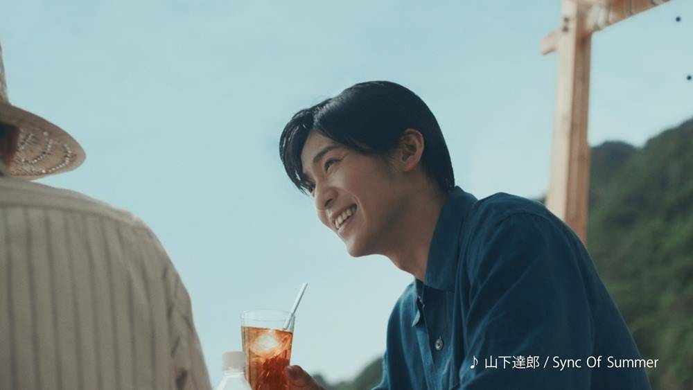 目黒蓮が出演する新CM「夏の午後が長いわけ」篇では、氷がたっぷり入った冷たいアイスティーを飲んで涼みながら、友人とまったりとした時を過ごす目黑の姿を描く。
