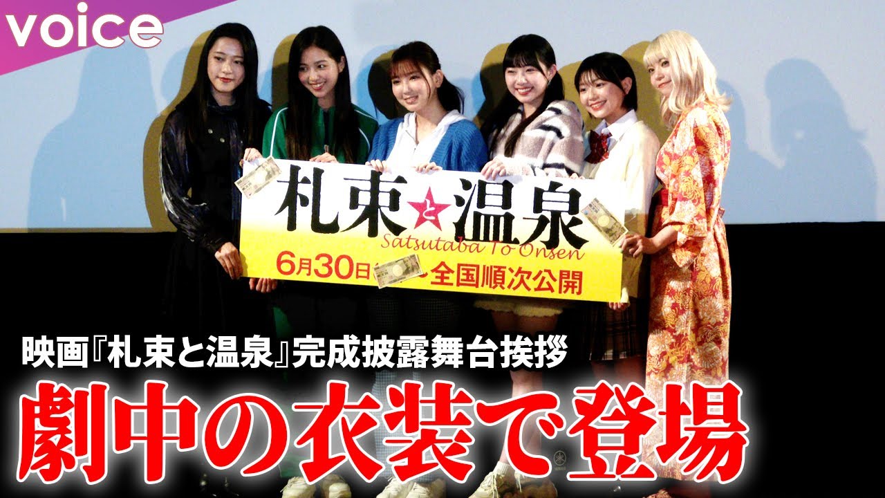 沢口愛華、小浜桃奈、糸瀬七葉、大熊杏優、佐藤京、星れいら、川上亮監督が7日、都内で行われた映画『札束と温泉』(6月30日公開)完成披露舞台挨拶に、劇中の衣装姿で登壇した。