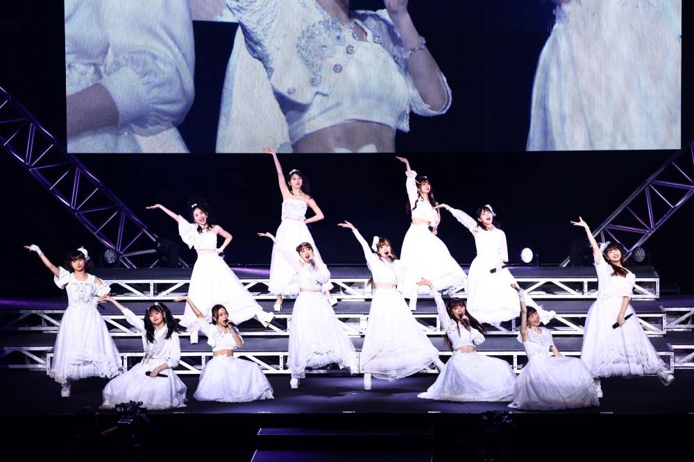 オープニング BGM と共に客席のボルテージが高まり、歓声も響いた公演は「Happy birthday to Me!」 からスタート。白く可憐な衣装をまとったメンバーはステージで躍動し、観客のコールを浴びながら 「Are you Happy?」「花が咲く 太陽浴びて」「そうじゃない」「What is LOVE?」を次々歌い上げた。