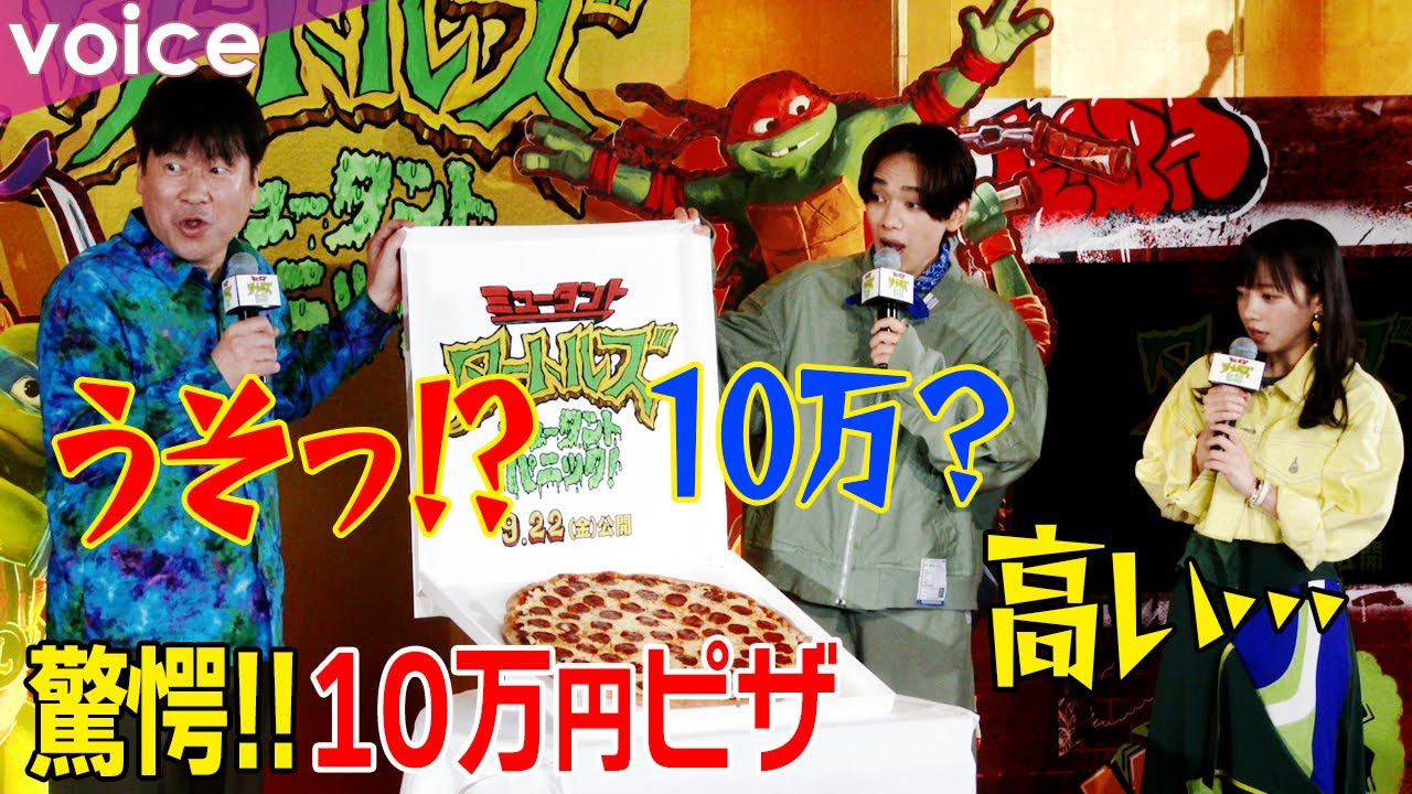 宮世琉弥、日向坂46齊藤京子、佐藤二朗が23日、都内で行われた『ミュータント・タートルズ:ミュータント・パニック!』(9月22日公開)日本語吹替版完成報告会見に出席した。