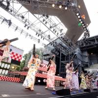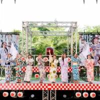 祭ばやしが鳴り、夏を意識して櫓が設営されたステージ。開演前からファンの期待値が上がるなか、1曲目は今回の公演にぴったりな『アイドル天職音頭』でスタートする。谷本安美、小野瑞歩、秋山眞緒、八木栞の4人が、初挑戦となる和太鼓のパフォーマンスを披露すれば、残りのメンバーは客席に降臨! はっぴ姿で登場したメンバーの衣装をはじめ、上記の作戦会議でも語られていた演出の連続に、会場のボルテージも冒頭からお祭りムードに突入する。