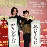 山﨑賢人と吉沢亮が12日、都内で行われた、映画『キングダム 運命の炎』のイベント“天下無双の大ヒット御礼舞台挨拶”に登壇した。