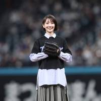 波瑠、始球式に登板「緊張で心臓が…!」きつね姿も披露