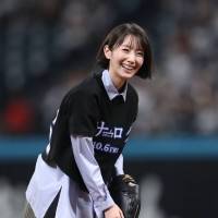 波瑠が27日、北海道・エスコンフィールドHOKKAIDOで行われた、北海道日本ハムファイターズー千葉ロッテマリーンズ戦でのファーストピッチセレモニーに登場。2010年5月以来2度目の登板で華麗なフォームを見せた。波瑠はきつねダンスにも参加した。