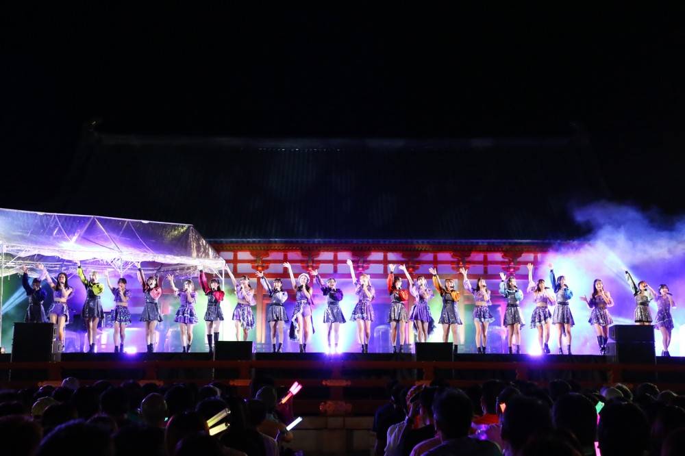 中秋の名月に合わせ、平安神宮の大極殿前に設置された特設ステージで音楽ライブが行われる「平安神宮 月音夜 ~京都名月コンサート2023~」。東山の空に浮かぶ月のもと、4日間に渡って繰り広げられるこのイベントの第三夜に登場したのがハロー!プロジェクトのグループ、Juice=JuiceとBEYOOOOONDS。