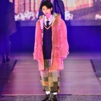ファッションショー初出演となった市村優汰。ブランド「Top of the Hill」のステージでは、ネクタイを合わせたニットベストにフード付きダッフルコートを羽織った。パッチワークのジョガーパンツを組み合わせ、オシャレに着こなした。