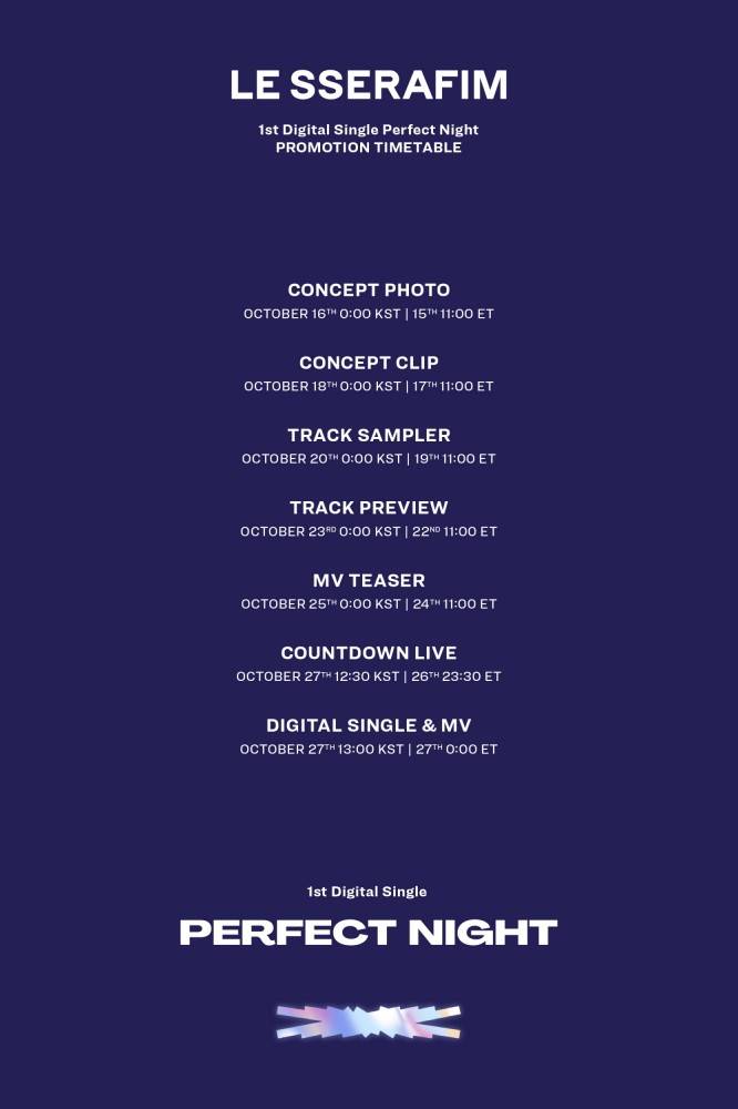 10月16日にコンセプトフォトを皮切りに、18日にコンセプトクリップ、20日にトラックサンプラー、23日にトラックプレビューを順次公開する。続いて25日には「Perfect Night」のミュージックビデオティーザー公開が予定されている。