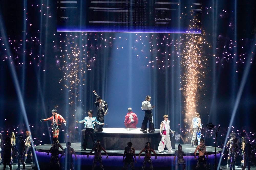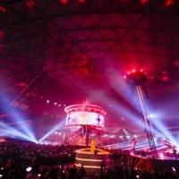 開演を告げるカウントダウンの後、植物や動物などの大自然をモチーフにしたオープニング映像が流れ、サポートダンサーによる儀式のようなものが繰り広げられると、センターステージに7人の姿が現れ、黄色い歓声が上がった。ライブは、11月11日にリリースされた新曲「Awakening Light」の初パフォーマンスで幕を開け、レーザーのような照明やファイヤーボールなどの演出も相まって会場の熱が一気に高まっていく。