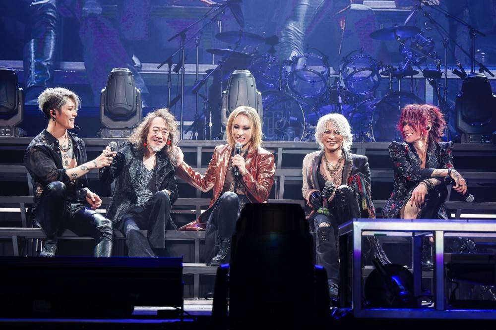 YOSHIKIは今回のPATAの参加について、「メンバー1人ひとりに直談判した。みんなが喜んでくれている顔を見て、(このメンバーが)集まってくれて良かったんだなって。だからPATAはあと5〜60年...」と涙ぐみながら話すと、それを受けたPATAは「頑張らないといけないな」とぽつり。和気あいあいとしたMCコーナーの最後にはワインが用意され5人で乾杯。YOSHIKIはPATAに「長生きしてね」と声をかける場面も。PATAは、「楽しかった」と笑顔でステージを後にした。