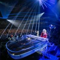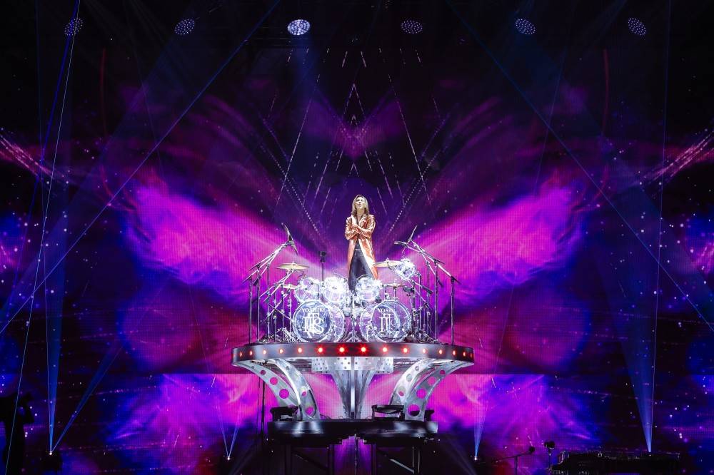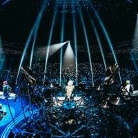 続いて、YOSHIKIのドラムソロへ。ストリングスのサウンドをバックに展開されるダイナミックなドラミングによって、会場の空気感が変わっていく。ドラムセットが設置されたステージが上昇するなか、YOSHIKIは感情を叩きつけるかのように全身全霊のプレイ。そんな鬼気迫る演奏からピアノソロへと流れていく。X JAPANの名バラード「ENDLESS RAIN」を優しく、時に熱く奏でていくと、オーディエンスはYOSHIKIの演奏に合わせシンガロングが巻き起こり、一体感のある空間を作り上げた。