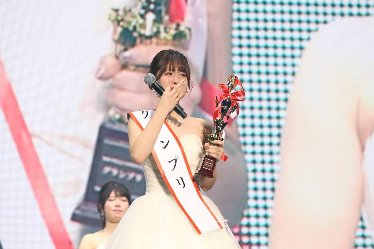 MCのHIKAKINからグランプリ受賞を発表された入山さんは、感極まって大粒の涙。タスキ・トロフィー・表彰パネルを手渡されると「ミスサークルを活動するにあたって、楽しいことばかりではなくて、つらいことだったり、自分の努力が報われないなと思うこともありましたが、家族や応援してくださる皆さまの支えがあって、ここまでやって来れました。本当にありがとうございました」と喜びを語った。