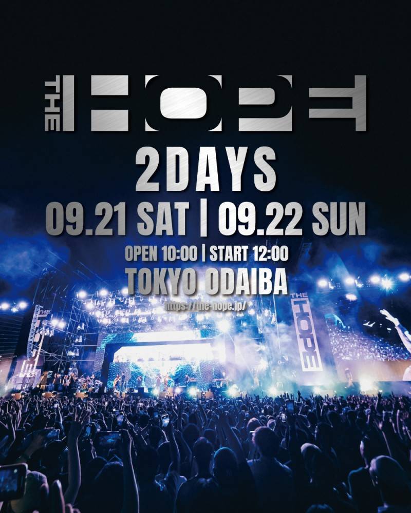 そして、今年もお台場THE HOPE特設会場で開催が決定。さらに規模を拡大し、初の2days開催で9月21日(土)、9月22日(日)となる。1月19日から最速先行チケットの販売もスタート。