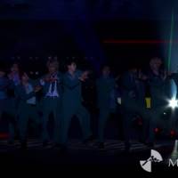 LIVE STAGEに登場したSUPER★DRAGONは、3月6日にリリースされたメジャーデビューシングル表題曲の「New Rise」でライブをスタート。力強さを感じさせる歌と踊りに加え、ステージからは特効の火花が噴き上がり、9人のパフォーマンスを後押し。