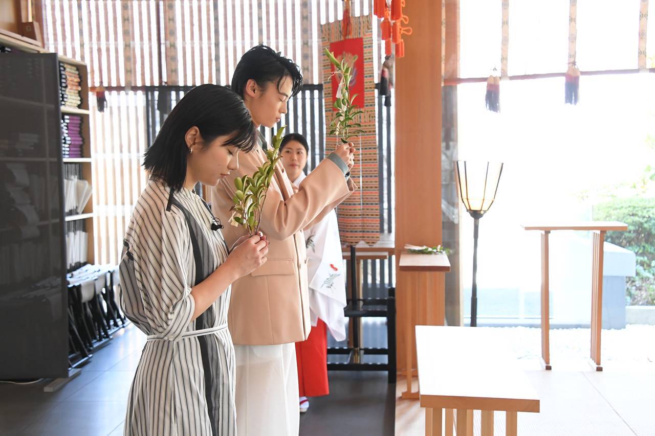 この日、神社内の本殿で祈祷を受けた。蒔田は「映画の撮影前などにご祈祷いただくことはありましたが、カメラの前でご祈祷いただいたことはなかったので緊張しながらも、しっかりお祈りしました」と清々しく笑顔を見せた。
