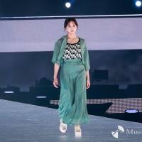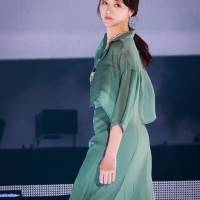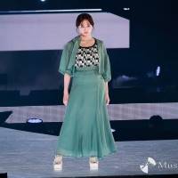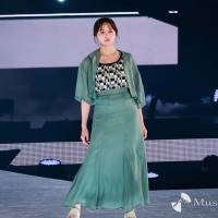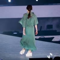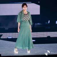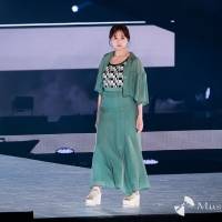 「MURUA」ステージでは、美デコルテが映えるキャミソールに、透け感のあるグリーンのセットアップ姿で登場。シャツをルーズに着こなし、アンニュイな表情を見せ大人な雰囲気を醸し出しながらランウェイを歩いた。