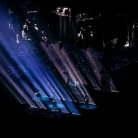 メリーゴーラウンドを思わせる円形のセンターステージと、そこから伸びる4本の花道。LEDスクリーンを備えた天蓋と台座の間を紗幕が覆っている。開演前から雨音を含むアンビエントなSEが流れていて、次第に雨足が強くなると場内は暗転。入れ替わりに、無線制御のオフィシャルグッズL'ライトが観客の手元で色とりどりに点灯する。いよいよ開演である。