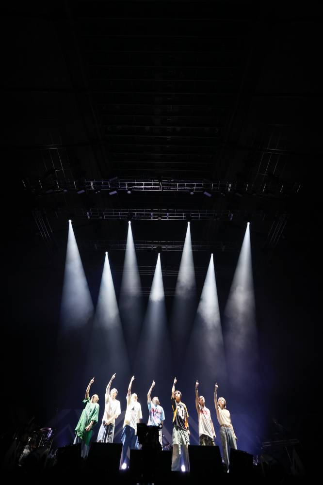 「Mainstream」のイントロが鳴り響くと、姿を表した7人。彼らは、1曲目から圧倒的なスキルで我々を魅了する。間髪を入れず、「Masterplan」を投下すると、我々はもう7人の一挙手一投足から目が離せなくなってしまう。オーディエンスは、手を高く上げ、彼らの奏でる音楽に呼応し、彼らの圧倒的なダンスに大きな歓声を上げる。絶えることのない歓声。そんな多幸空間の中で7人は縦横無尽にステージを動き回り、音楽を自由に楽しんでいる。