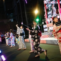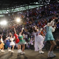 アンコールはメンバーが浴衣姿で登場。1曲目は振り付けを盆踊りバージョンにアレンジし た『アイドル天職音頭』。来場者と一緒に踊ることができるよう、事前に盆踊りの振付映像 がYouTube で公開されており、ファンも一緒になって踊る姿が印象的だった。