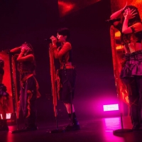 そして、市川優月が「楽しんでいくよ!Are you ready?」と煽って、「Blow Your Mind」へと続くと、さらに、雨を表現した照明や映像に乗せてニューアルバム収録曲「Squall」を初披露し、 さらに、「Drama」、「Ready Now」とライブ定番曲とニューアルバム『Flora』収録曲を交互に披露。特に、「Drama」でのお馴染みのカニダンスで見せたクールな表情から一転、オフィス風の SE からスタートしたアルバム曲「Ready Now」では、ステージ上に並べられた 4 つのデスクに座っ てパフォーマンス。メガネをかけて OL に扮した 4 人の顔が次々とモニターにアップで映し出さ れるという遊び心溢れる演出で、会場のボルテージも一気に高まっていく。アルバム曲「Ready Now」は、大規模なクワイヤや生ドラムをフィーチャーするなど、サウンド面でも新たなアプロー チを見せた楽曲。今後のライブでもセットリストの中で存在感を放ちそうな 1 曲になると感じた Colors も多かったことだろう。