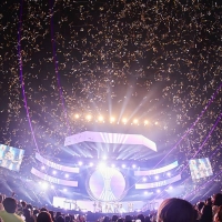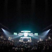続く、「10THINGS」と「TELEVISION」ではトロッコに乗り、よりMINIの近くへ行きサインボールのプレゼント。今回のテーマ「サークル」にちなんで丸形のモニターに丸いカラフルなボールの映像が流れるなど「サークル」の世界観を表現した演出で観客を楽しませる。そして、アニメのオープニングテーマ曲にも起用された「Whatever Happens」を本ツアーで初披露。切なく力強い歌声でエモーショナルなステージを作り上げた。