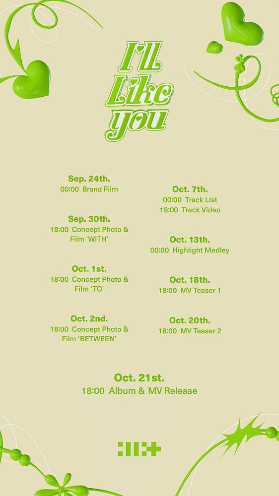 2nd Mini Album ‘I'LL LIKE YOU’とタイトル曲のMVは10月21日午後6時、全世界に同時公開される。‘I'LL LIKE YOU’はILLITが1st Mini Album ‘SUPER REAL ME’ リリース以後、約7ヶ月ぶりに披露する新作だ。3月のデビューと同時に「Magnetic」熱風を起こしたILLITがどのような楽曲を披露するか多くの期待が集まっている。