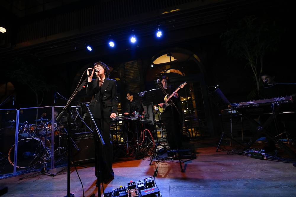 11月2日に開催された自身2度目となるBLUE NOTE PLACEショーケースライブでは、全身黒のパンツスタイルで登場。配信アルバム「SYNCHRONICITY POP」に収録されている3曲「SPICE OF LIFE」「DRIVE OUR DREAMS」「恥じらってグッバイ」をメドレー形式でのびのびと歌い上げると「開演前に皆さんと同じようにお食事を頂いたのですが、こんなに美味しいご飯を食べて好きな音楽ができるなんて生きていて良かった!と話すバンドメンバーの言葉に強く共感しました。皆さんも今日は心から楽しんで帰ってください!」とこの日の意気込みを語った。