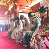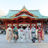 二十歳のAKB48新成人メンバー、16期生の鈴木くるみ、17期生の佐藤綺星・布袋百椛・正鋳真優・山﨑 空、18期研究生の八木愛月の6人が13日の成人の日に、神田明神で「二十歳のつどい」を行い、華やかな晴れ着姿をお披露目した。