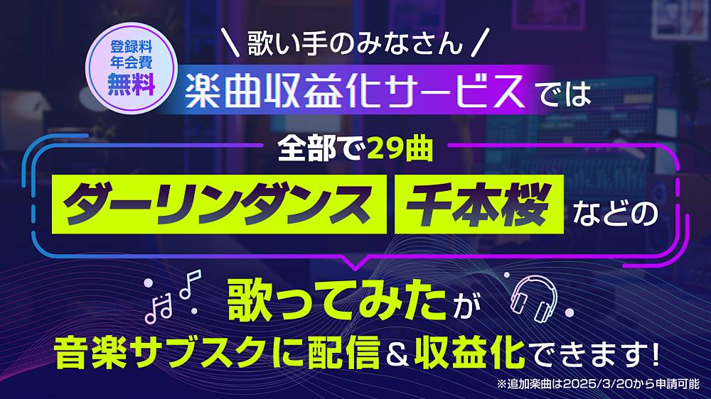 フォトニュース 「ダーリンダンス」「千本桜」「ハッピーシンセサイザ」など22曲が「楽曲収益化サービス」に追加 「楽曲収益化サービス」 みんなの意見は?コメントを見る 関連写真・動画 写真一覧 みんなのコメント コメントを書く(ユーザー登録不要) この写真の記事を読む「ダーリンダンス」「千本桜」「ハッピーシンセサイザ」など22曲が「楽曲収益化サービス」に追加 前の写真を見る →