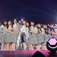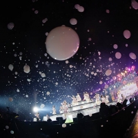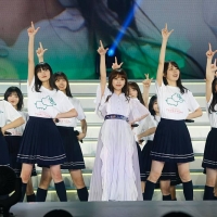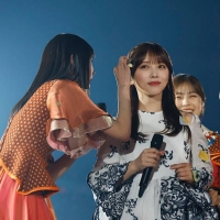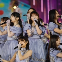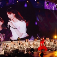 その後「今喋りきれなかった愛を精一杯込めて歌います」と告げるも、間違えて前日のアンコール1曲目に披露した「誰かの肩」をアナウンスしてしまい、会場が笑いにつつまれる。どこまでも与田らしいマイペースぶりに客席を優しい空気で充満すると、気を取り直して前夜にサプライズで配信された与田のソロ曲「100日目」を、最初で最後となるライブ歌唱をしてみせる。彼女らしさが凝縮されたこの曲をしっとり歌い切ると、会場は温かな拍手で包まれる。そして「他人のそら似」や「左胸の勇気」を歌いながら、与田はフロートに乗って観客に別れの挨拶をして回る。さらに、ステージ上にメンバーが勢揃いした「ジコチューで行こう!」では、間奏の“だるまさんが転んだ”で井上が与田の頬にキスする一幕もあり、ドーム内の熱気は最高潮に到達した。