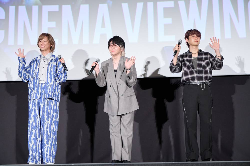Mrs. GREEN APPLEの大森元貴、若井滉斗、藤澤涼架が2日、東京・丸の内ピカデリー1で開催されたBlu-ray / DVDリリースを記念した上映イベント『Mrs. GREEN APPLE ゼンジン未到とヴェルトラウム〜銘銘編〜』SPECIAL GREETING & CINEMA VIEWINGに登壇。