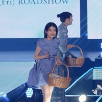 映画『か「」く「」し「」ご「」と「』のステージに5人が登場した。出口は、映画のイメージカラーでもある青を基調としたミニ丈のワンピース姿で登場。大歓声を受けながらランウェイを歩くと、トップでプレゼント投げ。笑顔で声援に応えた。