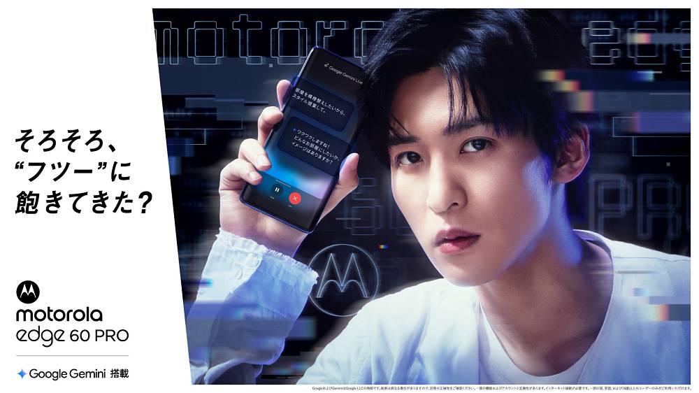 「モトローラ」ブランドアンバサダー・目黒蓮(Snow Man)が出演する新型スマートフォン「motorola edge 60 pro」シリーズの新TVCM「Google Geminiと模様替え」篇(15秒、30秒)が7月11日から放送される。