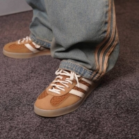 着用したシューズはadidasの「Gazelle Indoor」。70年代にリリースされた、インドアトレーニング用のアイコニックなガゼル インドアがベースのモデル。